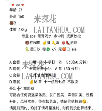 提前两天预订✌,我自己开的房,见到老师的第一眼小小个。即可爱又温柔,爱笑健谈,简单聊了几句 我们一起去浴室洗 的过程中还给我口,身体软软的,胸不大不小,形状好看,一个手刚好,洗完之后 我们来床上 开始服务,第一次给我口出来,中途我们聊的很开心,贴心 ,没过多久又开始第二次 ,过程老师很投入,没几分钟又缴械了,情绪价值拉满!超级值 ,很爽……冲冲冲 小姐联系方式: