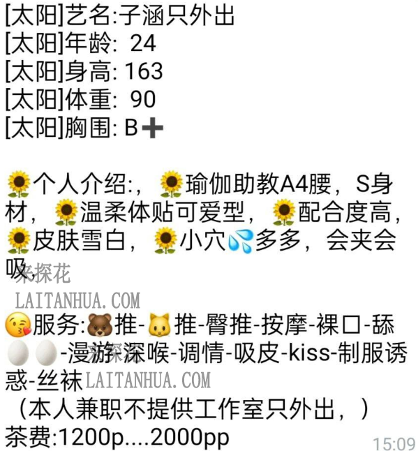 小姐资料: 🌸艺名:白虎萱萱🏡地区:上门…