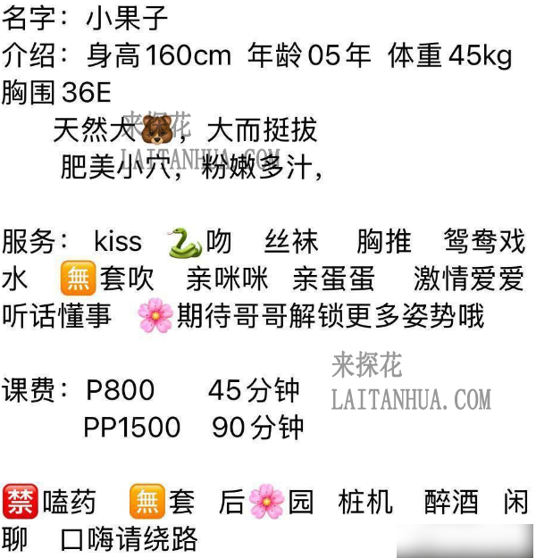 名字:小果子介绍:身高160cm 年龄05年 体重45kg 胸围36E天然大🐻,大而挺拔肥美小穴,粉嫩多汁,服务: kiss 🐍吻 丝袜 胸推 鸳鸯戏水 🈚套吹 亲咪咪 亲蛋蛋 激情爱爱 听话懂事 🌸期待哥哥解锁更多姿势哦课费:P800 45分钟PP1500 90分钟不外出的哦🈲嗑药 🈚套 后🌸园 桩机 醉酒 闲聊 口嗨请绕路 小姐联系方式: