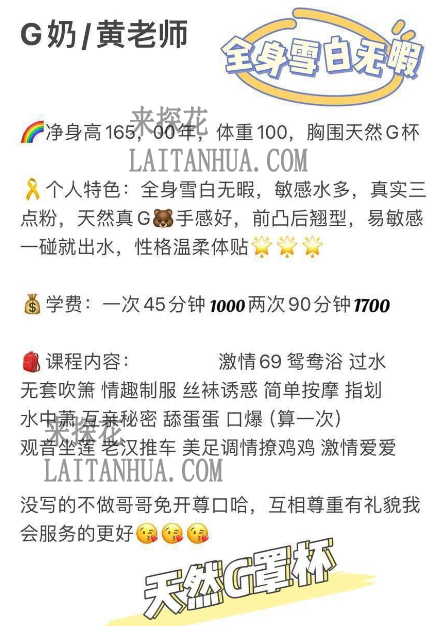 进门打招呼,一对巨乳映入眼帘,令人移不开眼,老师脱下衣服的时候确实是非常震撼。老师颜值与照片并不像,但是本身颜值是耐看的,很素人女生的感觉,仁者见仁智者见智,我是很喜欢的。洗澡的时候遇到了热水不热的情况也很耐心的解决了,一直有说有笑非常的e人,我这种不太会说话的也能唠嗑。洗完澡躺床上之后胸推+口(很卖力很舒服)+然后狠狠地对接狠狠出水~等待2p过程也会跟人聊天,不冷场,很棒的体验。 小姐联系方式:
