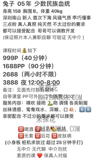 43kg😀 深圳 南山😀:kiss, 舌💋到饱 69,深🐒 口爆 亲咪咪 舔蛋蛋胸 鸳鸯浴 丝袜诱惑 情绪内衣 制服 爱爱 水中萧 主动热情 乖巧懂事备注:布衣族妹妹首次下海 只要不太过分的都可以 接受配合 哥哥可以调教 开发哦🥰价格:😀 999 😀1课 40分钟😀 1688 😀2课 90分钟 (外出先路费)20公里内200😀 2688 包时 2小时(不限次)😀 3888 夜课8小时(12-8:00)出击尽量带现金噢🥰😀拔套 后花园 嗑药 醉酒 皮肤病😊口令预约 感谢理解