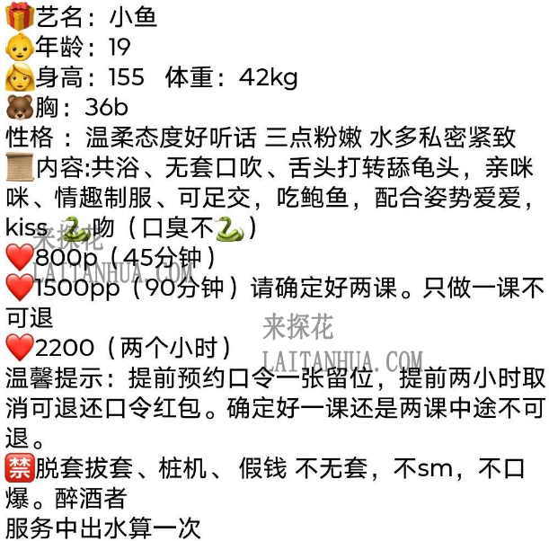 胸B 年龄:20身高:155cm 体重:42kg服务内容:帮哥哥洗澡,鸳鸯浴,水中箫, 69,口爆,舌吻,观音坐莲,玉女怀抱 ,老汉推车 ,制服丝袜诱惑,👠情趣内衣诱惑,kiss调情,🈚️套口,舔蛋蛋,👅咪咪,激情爱爱❤️,配合哥哥各种姿势,配合度高,态度好,不过分要求尽量满足课费:800P 50分钟1500PP 90分钟 小姐联系方式: