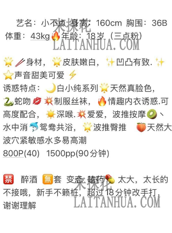 小姐资料: 胸B 年龄:20身高:155…