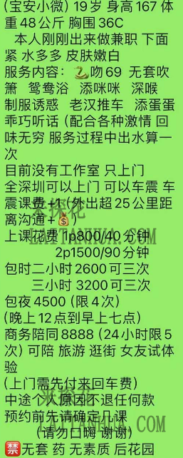本来昨晚就想约的,太晚了一点,跟妹妹聊了很久了解了一下,感觉是自己喜欢的类型,今天下午就果断订房约了,叫我在指定的位置接她,妹妹说话很温柔,也很有耐心,上车看到妹妹比照片里更加好看,我们一起洗澡,胸摸起来软软有弹性,感觉好舒服,皮肤白,身材气质也很棒,很喜欢笑,很可爱的妹妹,中间换了几个姿势,妹妹也很配合,下面紧水也很多,也不催人,看着白嫩的大长腿和翘翘的胸,带来了前所未有的冲击!真的好给力,这样的妹妹下次在约! 小姐联系方式: