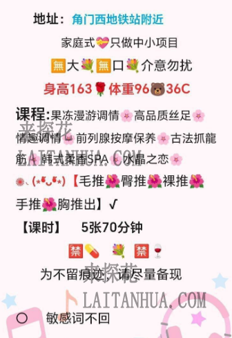 小区环境安逸,引导后进门,小姐姐人照无差,身材很棒。冲洗后开始简单按摩,先做B面项目,非常舒服,换A面后先臀推出了一发。闲聊按摩休息10分钟后,再来一发。总体上小姐姐色艺双全,胡建人,聊天挺有意思,很想一直抱着的感觉,体验满分。 小姐联系方式: