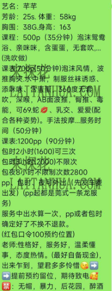早就想去找芊芊老师体验一下服务了,结果终于有机会了,服务和课表上的一样,没有漏,一切都在不言中,感觉都不用戴套开插,在服务中都可能被解决了哈哈哈,反正一个字 绝!可以去体验一下。