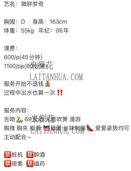 艺名:微胖梦奇 胸围:D身高:163cm 体重:55kg 年纪:06年 课费: 600/p(45分钟) 1100/pp(80分钟) 服多开始不退💰 过程中出水也算一次!! 服务内容: 舌吻🐍 69 互动 无套吹箫 漫游 胸推 胸夹 指滑 👅舔蛋 丝袜制服👠 配合各式爱爱动作 主动配合~ 🈲柱机🈲醉酒 🈲拔套🈲嗑葯 小姐联系方式: