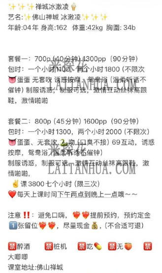 年龄:04年 身高:162 体重:42kg 胸圍: 34b套餐一:700p(40分钟)1300pp (90分钟)包时:一个小时1100,两个小时1800(不限次👅蛋蛋 无套吹 诱惑按摩,鸳鸯浴(温柔听话不催钟)制服诱惑,制服可选,激情互动丝袜高跟鞋,激情啪啪套餐二:800p (45分钟)1600pp (90分钟)包时:一个小时1300,两个小时2000(不限次)👅蛋蛋、无套吹 🐍吻(口臭不接) 69互动,诱惑按摩,鸳鸯浴(温柔听话不催钟)制服诱惑,制服可选,激情互动丝袜高跟鞋,激情啪啪,✌️课3800七个小时(限三次)❤️每天上课时间下午两点到晚上一点哦~~注意‼️:避免口嗨,❤️🔥❤️🔥提前预约,预约定金1️⃣张留位❤️🔥❤️🔥,尽量现金💰,(不合适可退)🈲醉酒 🈲桩机 🈲吃💊 🈲无🍑 🈲大唧唧课室地址:佛山禅城