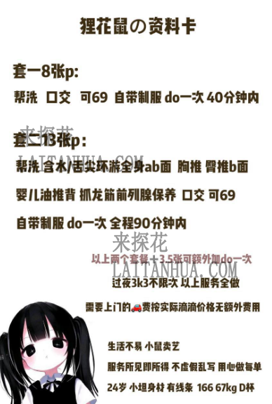一向喜好白幼瘦的我那天突然想换一种喜好,挑了一晚上,唯独在鼠鼠频道研究了很久,便拿出勇气私聊了老师,但看老师频道说那两天不开,还是尝试问了,结果不让人失望,第二天晚上有一节课时间,便缘分既定满怀期待的到了晚上,和漫长的等待,鼠鼠到了,颜值可以肯定,虽然没化什么妆,但底子很好,化妆了肯定完美,身材应该是标准BBW,进门便打开了话匣子,那种一见面就喜欢笑的女孩子真的很容易沟通,虽然我感觉那股笑有一种图谋不轨,她很害羞,脱衣不许看,换装不许看,小女友味拉满,陪洗环节也很认真,我见过洗的最认真的了,小腿都会给你照顾到,我还好奇的问了句“等下的活动我的小腿是会起了什么作用吗”。她会自己带精心挑选的战袍,只是不巧,爱黑色的我带了白色,还特意带了吊带白丝搭配,有心了鼠鼠,换上我备的黑丝后感觉直接拉满,便躺下服务,口活确实很顶,张弛有度,那种缓慢用力口的感觉会比一股脑的冲刺更加有感觉,更像品尝,时间也不短,便开始步入正题,传教士,后入,出水,又是一种全新体验,特别感谢鼠鼠给的那些情绪价值总结一下,是爱干净,对人有心的老师,态度不会像那些讨好型老师,她会有一种带着笑脸的傲气,不会百分百听你的,但是绝对会做到她该做的,接得上话,会照顾你的情绪价值,嬉笑打趣样样精通,最后走了还不忘夸我嫩,可太会了。下次再见