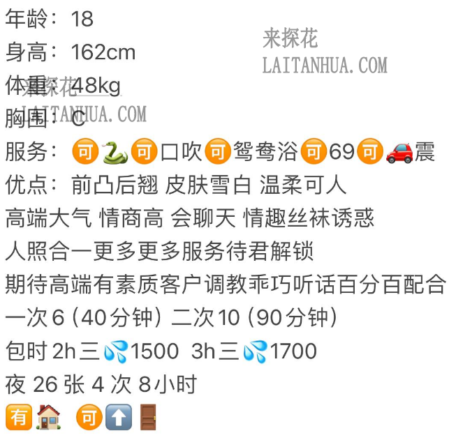 凌晨三点醒来,恰巧刷到思思妹子,一看嫩妹,再看五点下课,索性出击。约好以后到达战场,开门老师小小只,可可爱爱。坐着抽了一支烟,吹了吹水,脱衣帮洗,嫩妹嘛,服务这块要求不能太高。床上相拥,对视互相笑了。顿时有种女朋友的感觉。服务过程不赘述,只能说有点调皮,不过这就是女朋友的感觉。 小姐联系方式: