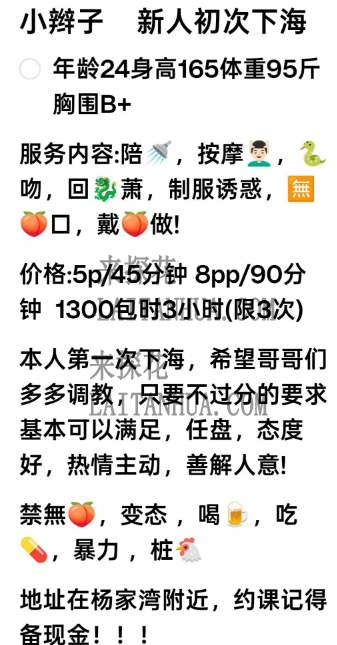 课室位置比较安全,环境也很舒适让人放松,开门见到老师的第一眼感觉跟频道照片视频差异不大(只是加了美颜滤镜而已),挺惊喜的,是自己喜欢的类型,常规服务不表,比较惊喜的是老师的口,技术满满,也很用心,边口边时不时眼神交流,我快挺不住了赶紧叫停,女上起手,进入瞬间湿润温暖,边女上边🐍直接差点让我缴械,赶紧忍住换姿势,最后传教士出水,总体而言体验感满满,后悔只约了P,后面二刷会PP 小姐联系方式: