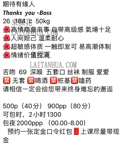 26 164 c 50kg🌺高情商會來事 自带高级感 氣場十足🌺人间妲己 温柔耐心🌺超敏感体质 一触即发可 易高潮体制🌺情绪价值拉满舌吻 69 深喉 五套口 丝袜 制服 爱爱🈲 无套 🈲喝酒 🈲大🐂桩基🈲嗑药请相信一定会给您带来终身难忘的邂逅500p(40分) 900pp(80分)包时2小时1300(限ppp)包夜2000ppp (00.00-8.00)预约一张定金口令红包🧧上课尽量带现金