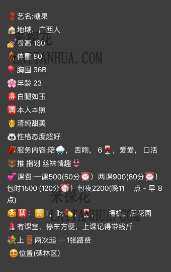 老师服务很用心,细节做得好,尤其是口活特别舒服,很温柔,没有齿感,姿势也挺配合,逼逼形状很好看,粉粉嫩嫩的干起来确实很nice,为人很随和有礼貌,放心出击。 小姐联系方式: