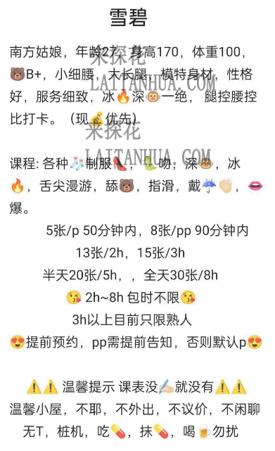 🦖颜值:颜值中上,耐看型。🦖身材:170高挑身材,🐻B,大长腿,正常皮肤。🦖服务: 大蟒蛇,冰火口技一绝,课表服务不打折。🦖态度:温柔细语,态度很好。🦖环境:干净整洁,房间布置很温馨。🦖过程:提前联系,确定时间准时到达,指引清晰,进门拿鞋放水,浴室比较小,没有陪洗,洗完不用自己动手,前后左右给擦干,攻速装多,随机选一个盲盒,起手大蟒蛇,一路游走到下面,冰火口技舒服,做爱投入,底下水润,温柔御姐范。🦖总结🦖:170+高挑身材,大长腿,服务态度给的足,能说能唠,情绪给的足,服务型御姐。