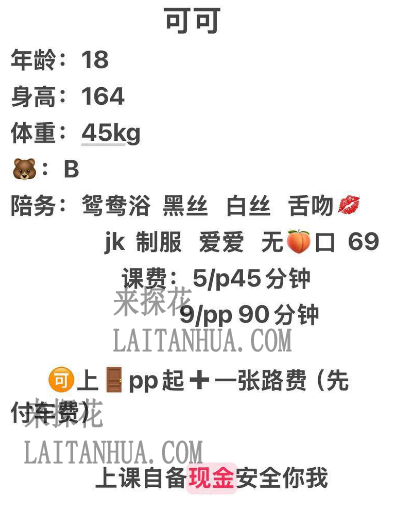 超出我预期的一次CJ,妹子非常可爱。眼睛看上去有一股淡淡的忧伤,胸型我特别喜欢啊是个A,好有感觉。嫩妹没什么服务,话也比较少需要狼友们自己找话题,但是颜值这一块真的顶。传教的时候妹子的脚还会往回勾你,这种无意识的动作太吸引人了哈哈哈。嗯,下次CJ还要找可可。