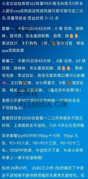 但重点是第二次,因为本人体质问题第二遍非常难出,姑姑非常有耐心地帮我口,用大熊夹住我,全程都十分地卖力,一点也没有催钟,还会用各种方法挑逗我让我更有感觉,终于在姑姑的不懈努力下我在姑姑的小嘴里出了第二发,回头才发现已经超时了一段时间了,真是辛苦姑姑了。走的时候姑姑还送上香吻还给了一瓶水十分周到。
